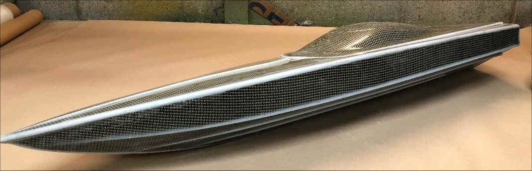 of Mirage EK epoxy and carbon and kevlar vacuum joined boat