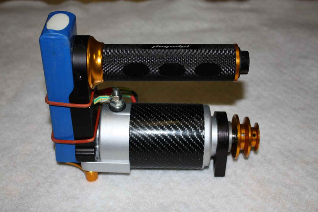 with 3S or 4S lipo or 12volt battery. This starter has a solenoid to stop